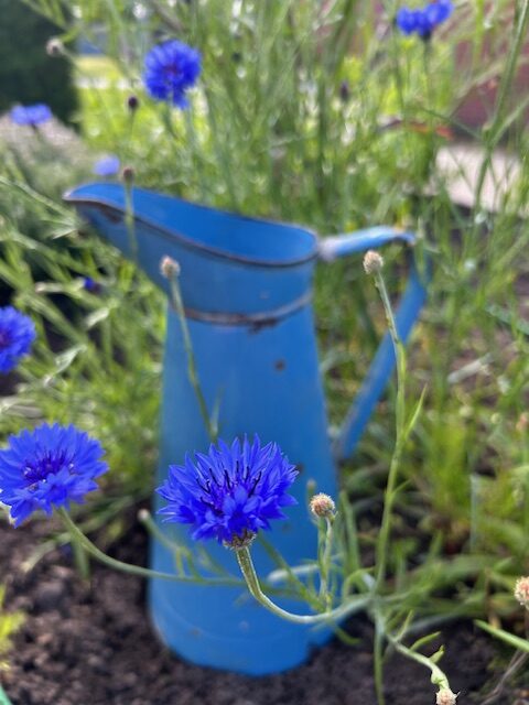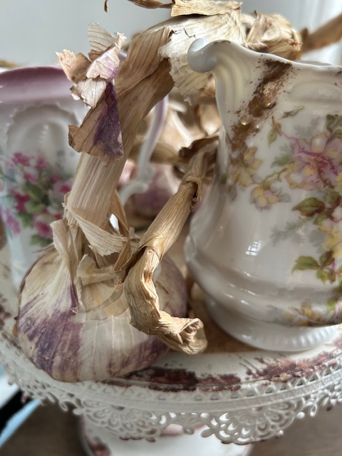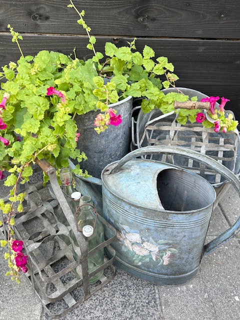 En thuisgekomen wordt een mooie oude schaal of pot op bestelling gevuld met kruidenplanten of een houdbaar bouquet voor in de keuken.