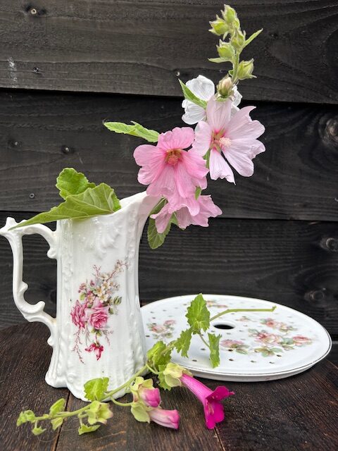 Een soepterrine met rozen of zinken teil met veldbloemen ter aankleding van een tuinfeest, een uniek vaasje gevuld met bloemen of een beeld voor op de schouw.